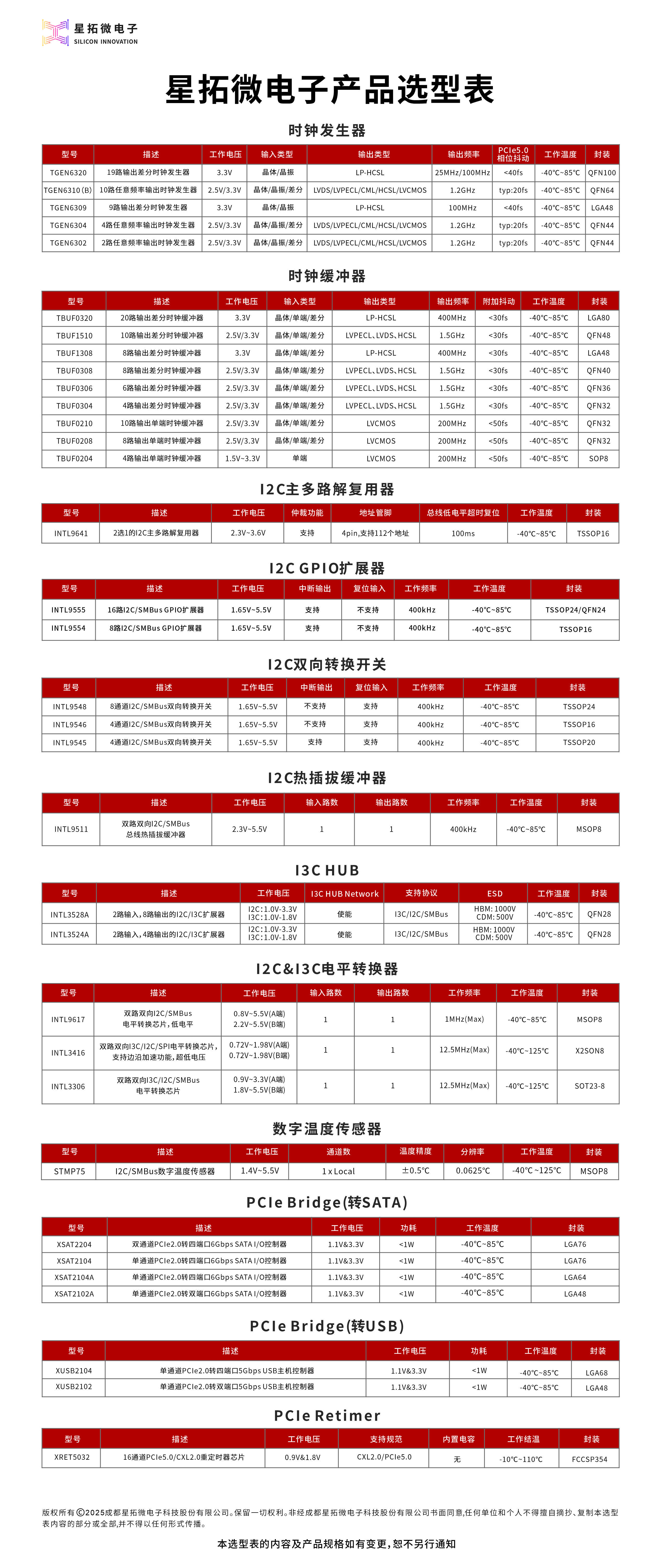 TBUF0308 2.5V/3.3V 晶体/单端/差分 LVPECL、LVDS、HCSL 1.5GHz <30fs 8 -40℃~85℃ QFN40